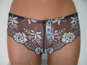 Трусики-слип с низкой  линией талии из эластичного кружевного полотна на передней детали и эластичного полотна (мягкой  микрофибры, которая дарит ощущение комфорта) на задней детали. Трусики-слип сделаны с использованием хлопковой ластовицы. Обратите внимание, трусики имеют европейскую маркировку.