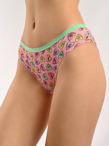 Оптовая продажа. Трусики слипы женские из мягкого бамбуко-хлопкового полотна с добавлением эластана, повышающий прочность и качество одежды, создавая идеальное облегание фигуры. Имеют среднюю посадку, мягкую и эластичную тонкую резинку по талии контрастного цвета. Модель выполнена в розовом цвете с тематическим принтом по всему полотну. Гигиеничная хлопковая ластовица позволяет избежать трения и раздражения кожи. Удобная и комфортная модель для повседневного белья. Рекомендуется бережная стирка при 30С.