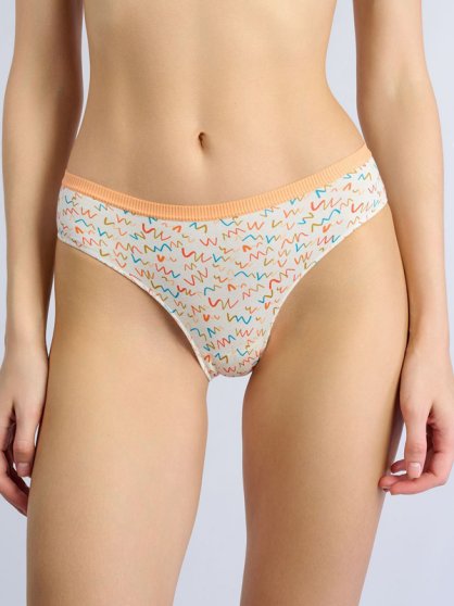 Оптовая продажа. Трусики слипы женские из натурального хлопка с добавлением эластана (хлопок 95%, эластан 5%), повышающий прочность и качество одежды, создавая идеальное облегание фигуры. Имеют среднюю посадку, мягкую и эластичную резинку по талии, удерживающие трусы во время носки. Модель выполнена в белом цвете с рисунком разноцветные линии. Гигиеничная хлопковая ластовица позволяет избежать трения и раздражения кожи. Удобная и комфортная модель для повседневного белья. Рекомендуется бережная стирка при 30С.
