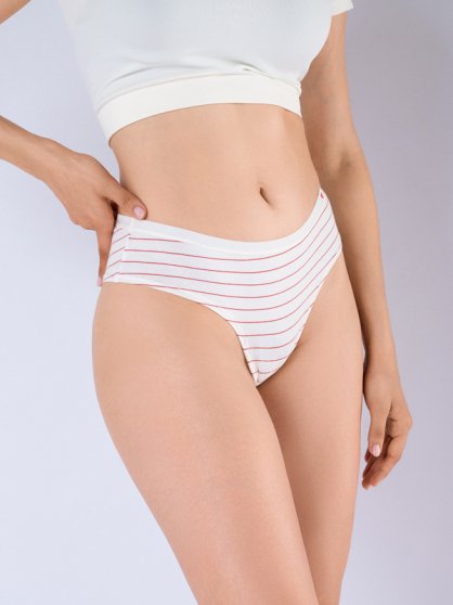 Оптовая продажа. Трусики танга женские из натурального хлопка с добавлением эластана, повышающий прочность и качество одежды, создавая идеальное облегание фигуры. Имеют среднюю посадку, мягкую и эластичную резинку по талии, удерживающие трусы во время носки, не сдавливая и не оставляя следов на коже. Модель выполнена в белом цвете с динамичным рисунком полоска, без декоративных элементов. Гигиеничная хлопковая ластовица позволяет избежать трения и раздражения кожи. Тактильно приятные на ощупь подходят даже для самой чувствительной кожи.
