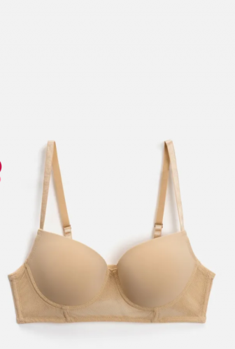 Женский бюстгальтер модели T-shirt станет отличной забой бельевого гардероба. Модель изготовлена из блестящей эластичной ткани и крупной сетки, которые обеспечивают комфортную посадку и плотное прилегание к телу. Бюстгальтер с формованной чашкой из поролона на косточках обеспечивает необходимую поддержку груди и подчеркивает ее естественную форму. Стержни в боковых швах равномерно распределяют нагрузку, делая ношение еще удобнее. Несъемные регулируемые бретели позволяют подогнать изделие под индивидуальные параметры фигуры. Пояс бюстгальтера полностью выполнен из эластичной сетки. На спинке расположена застежка на три пары крючков и петель. Модель представлена в двух базовых цветах: черном и бежевом.31204111272