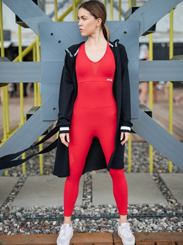 Женский комбинезон для занятий фитнесом, йогой, танцами, пилатесом. Мягкий и эластичный материал обеспечивает плотную посадку по фигуре с лёгким компрессионным эффектом. Неоспоримым преимуществом является то, что слитная конструкция не задирается во время тренировки, в отличие от раздельных комплектов. Анатомический крой, встроенные съемные чашечки – всё для максимального комфорта и подчеркивания красоты Вашей фигуры. Комбинезон имеет застежку сзади на три ряда крючков, что позволяет регулировать объем под грудью. Эластичные резинки на спинке «крест-накрест» обеспечивают надежную посадку. Модель есть в классическом черном и эффектном красном цвете.