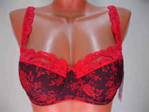 Бюстгальтер полупоролон с мягкой чашечкой и диагональным швом, нижняя деталь с Т-образным швом, на каркасах. Нижняя часть бюстгальтера гладкая, тонкая поролоновая основа, верхняя часть выполнена из эластичного кружевного полотна. Спинка выполнена из эластичного полотна. Стан и бочка выполнены из эластичного полотна и продублированы изнутри хлопковой основой. Бюстгальтер имеет боковые косточки. Высота бочка 8 - 10см. Регулятор длины бретели сзади. Передняя часть бретели обтянута кружевным полотном. Застежка на два крючка, два варианта объема. Между чашечками на стане украшен маленьким бантиком.