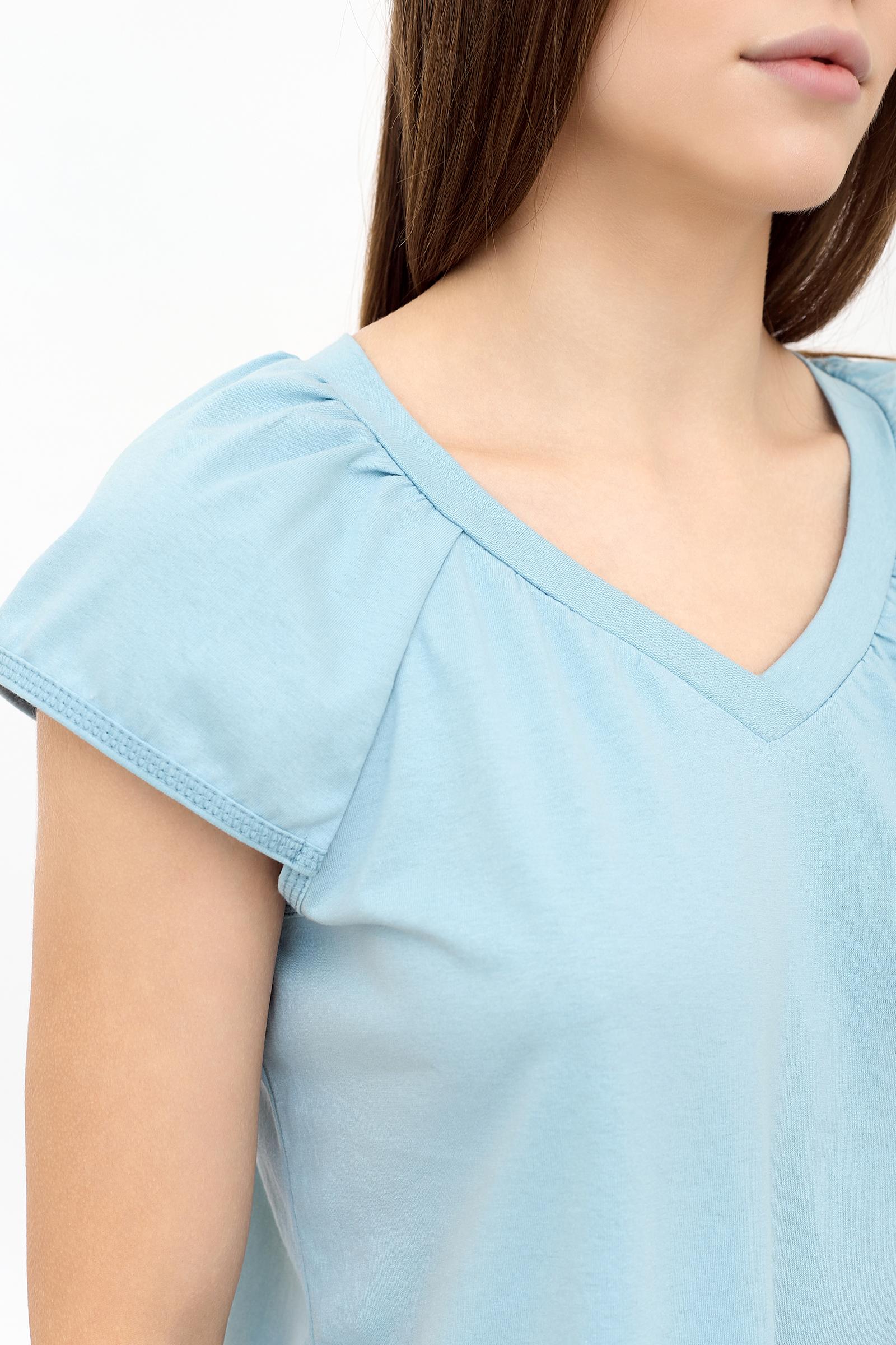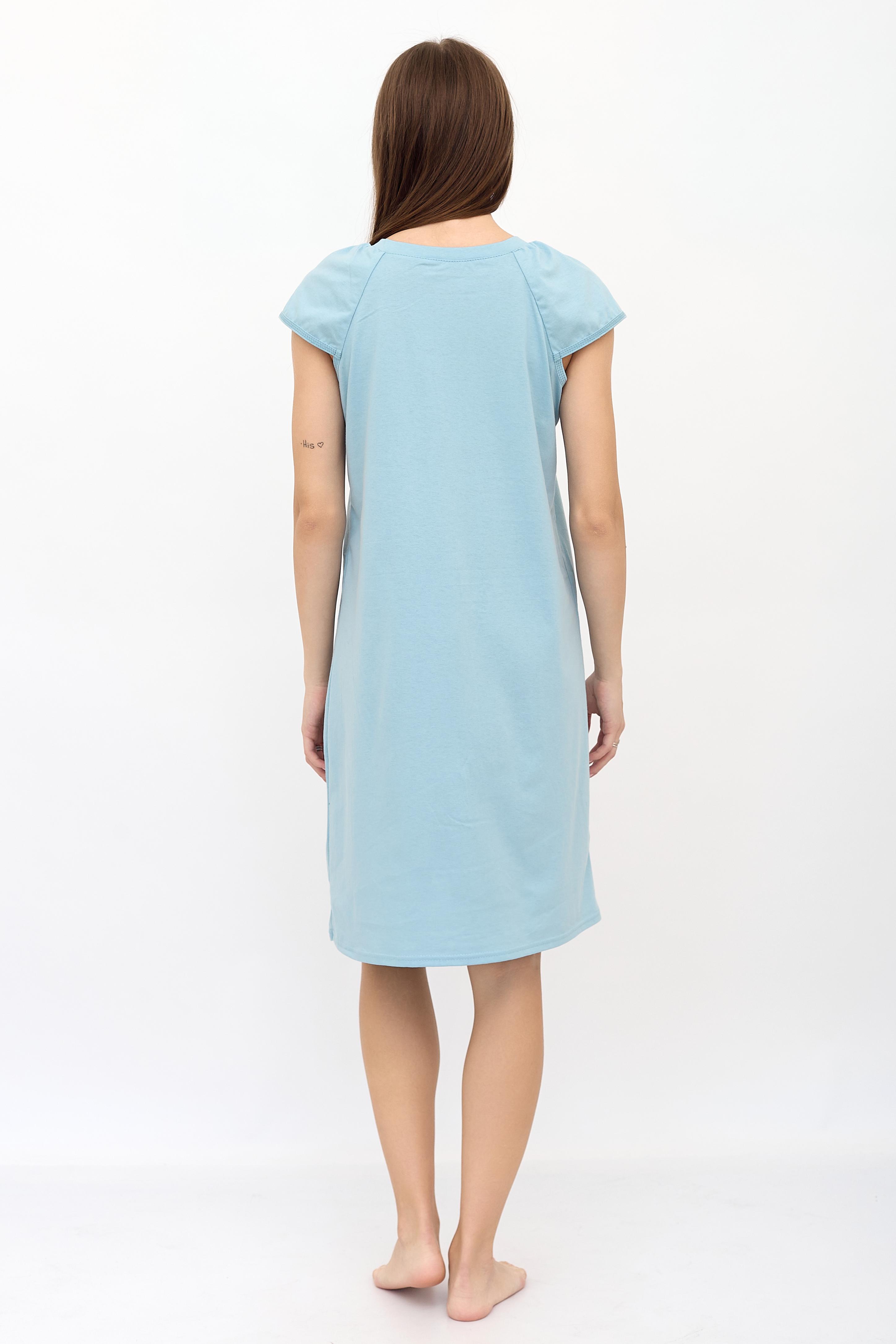 Женская ночная сорочка прямого кроя из качественного хлопкового полотна. Состав ткани и крой сорочки окунут вас в комфортный и сладкий сон. Сорочка с коротким рукавом – реглан. Красивый V-образный вырез горловины с декоративными пуговицами. Длина сорочки до коленей. Полочку украшает крупный принт в виде цветов.