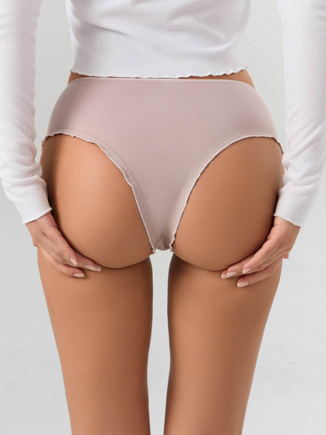 Набор из трех женских трусов-бразилиана — это элегантное и комфортное белье для повседневной носки. Модель со средней посадкой выполнена из легкого хлопкового трикотажа, который обладает высокой воздухопроницаемостью и обеспечивает комфорт в течение всего дня. Цельные передняя и задняя детали создают гладкий силуэт без лишних швов, что делает трусы практически незаметными под облегающей одеждой. Верхний срез украшен изящным бантиком, добавляющим образу женственности и игривого шарма.