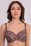 Классический бюстгальтер выполненный из эластичного жаккардового трикотажного полотна, функционального эластичного трикотажного полотна и эластичного кружева. Модель на каркасах, мягкие чашки с тройным членением и боковой корректирующей деталью.