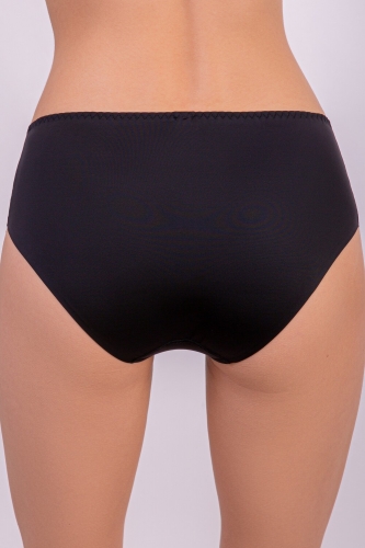 Слип , средняя + линия талии ( выше стандарта на 1,5 см, расширенная боковая деталь) выполнены из эластичного трикотажного полотна и эластичного кружева. Передняя деталь декорирована кружевом. Задняя деталь из эластичного трикотажного полотна, нижние срезы обработаны клеевым способом.