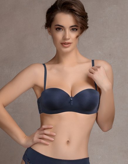 Оптовая продажа. Бюстгальтер с формованными чашками "пуш-ап" из гладкой микрофибры на чашках и кружевного стана с силиконовой поддержкой, бретели съёмные, в центре декоративный элемент. Размер чашки данной модели D (указан в конце артикула).