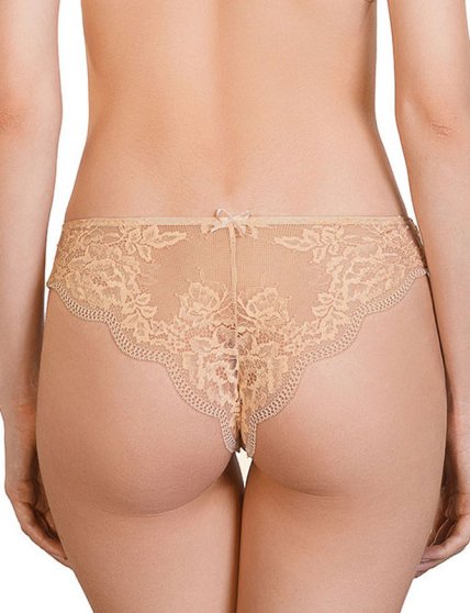 Оптовая продажа. Комплект женского белья. Бюстгальтер с мягкой чашкой, на косточках, с Т-образным швом, из биколорного кружева с ажурными фестонами и цветочным узором. Трусы бразилиана со средней линией талии из биколорного кружева, х/б ластовица.