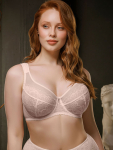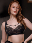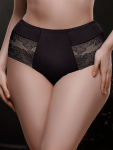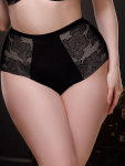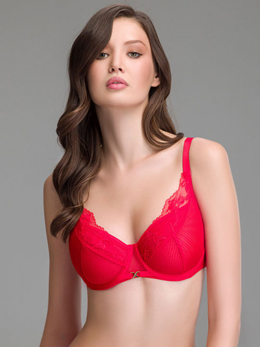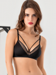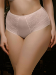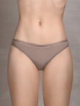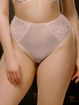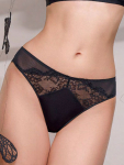 Трусики-бразилиана со средней посадкой, высота бочка 4,5 см. Пояс обработан тончайшей резинкой. Плоские срезы у ножек. Выполнены из утонченного кружева и сетки с диагональной полоской. Коллекция "Scarlett".