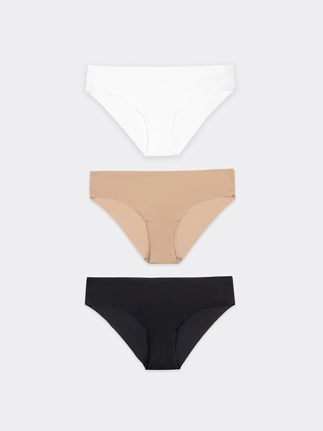 Слип-бикини женские набор (3 шт.) из высококачественного материала в трех разных расцветках. Посадка по талии классическая. Верхний и нижние срезы трусиков выполнены с "сырыми" краями. Трусы женские из нежной микрофибры — популярная модель женского белья. Невероятно удобные, благодаря своей средней посадке, они пользуются заслуженной любовью покупательниц. Продуманная анатомическая конструкция, бесшовная модель. Подходит для повседневной носки, под облегающую одежду из тонкой ткани. Широкий размерный и цветовой ряд нижнего женского белья. Рекомендуем!