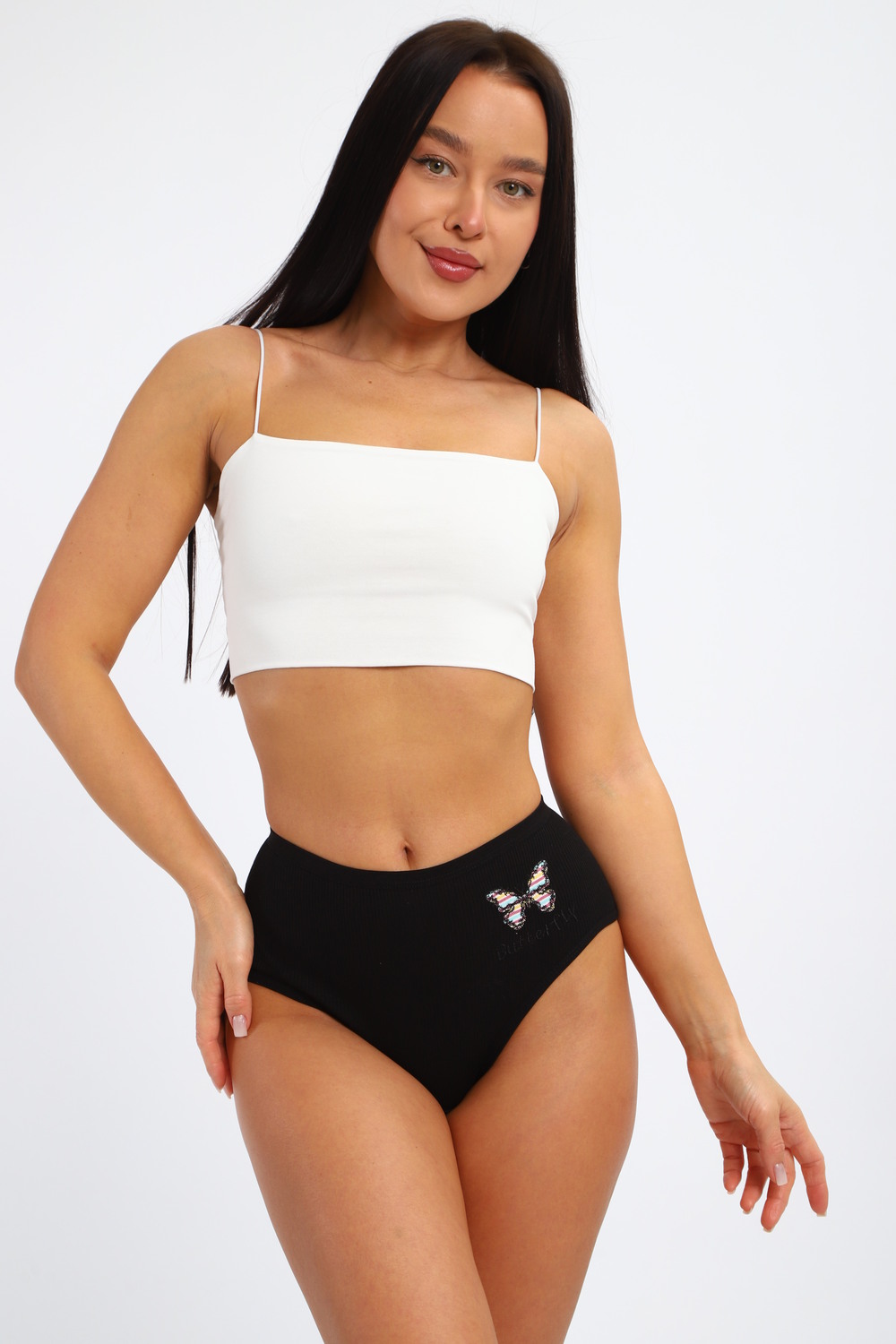 Трусики лапша с принтом бабочки в технике вышивка, мягкие, комфортные и удобные. Производство Китай. Цвет: синий;черный;фиалка; Материал: лапша;лапша; Состав: 95% хлопок, 5% спандекс.