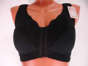 Бюстгальтер хлопковый без каркасов c застежкой на 5-8 крючков спереди. Выполнен из хлопкового полотна и эластичных кружев. Т-образная форма чашки с поролоновой деталью внутри поддерживает грудь снизу и формирует грудь сбоку. Широкая поролоновая деталь бретели равномерно распределяет нагрузку на плечо.