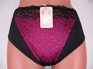 Трусики-слип со средней  линией талии из эластичного кружевного полотна и эластичного полотна (мягкой микрофибры, которая дарит ощущение комфорта )  на передней детали. Задняя деталь выполнена из эластичного полотна. Трусики-слип сделаны с использованием хлопковой ластовицы.