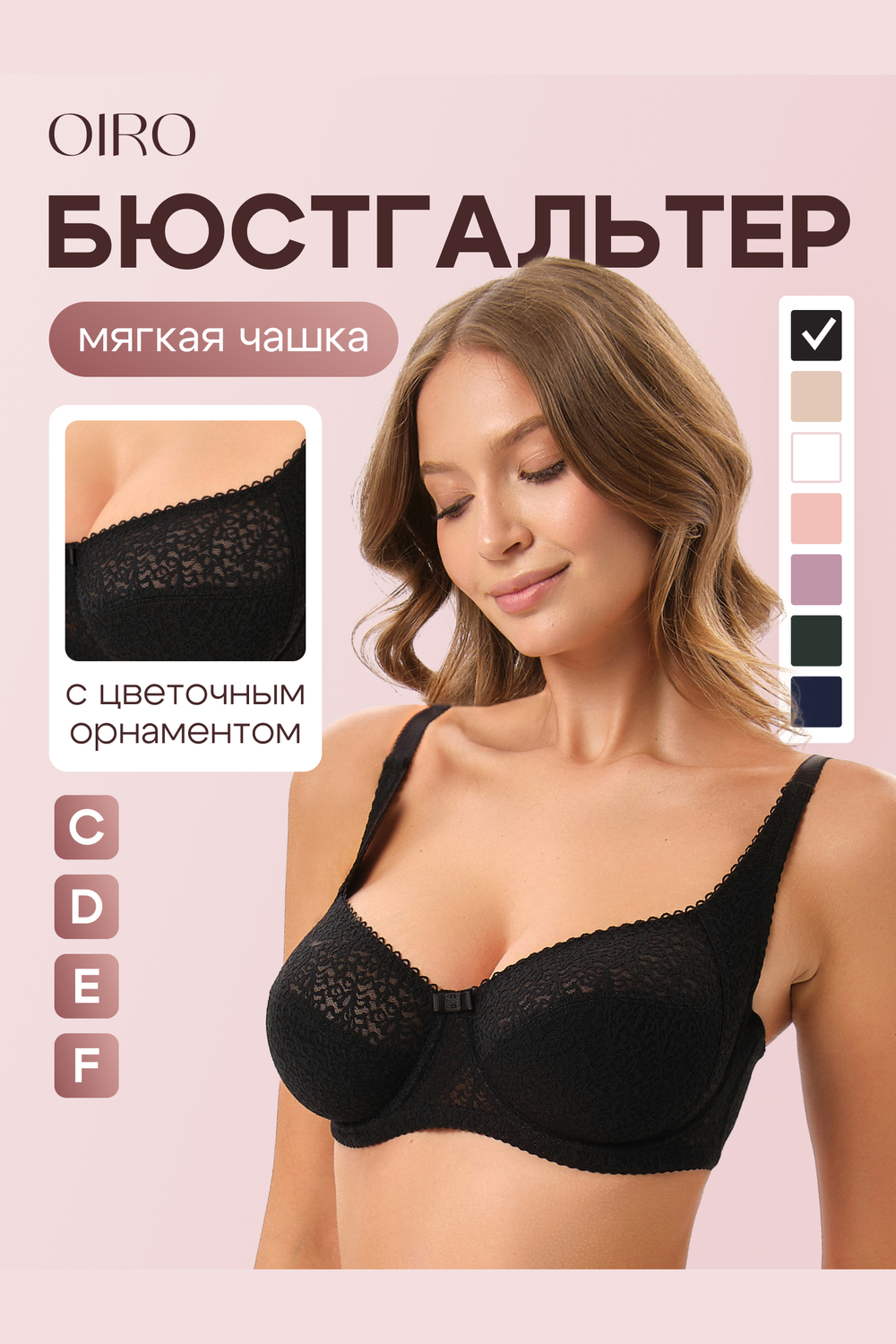 Женский бюстгальтер от OIRO предназначен для поддержки и придания формы груди. Он доступен в разных размерах, в том числе и для женщин с большой грудью. Кружевные детали придают ему особый шарм и красоту, позволяя девушке чувствовать себя уверенно и привлекательно. Бюстгальтер на косточках оснащен мягкими чашами, которые поддерживают и формируют грудь без использования пуш-ап. Цвет: черный;бежевый;белый;лиловый;темно-синий;изумрудный; Материал: нейлон;спандекс;нейлон;спандекс; Состав: 90% Нейлон, 10% Спандекс.