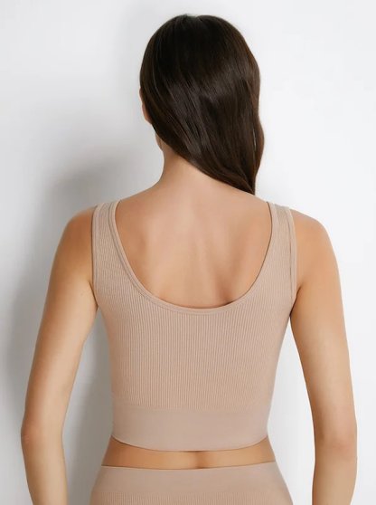 Оптовая продажа. Топ женский удлиненный из мягкой микрофибры с вафельным плетением, бесшовный, на широких бретелях.