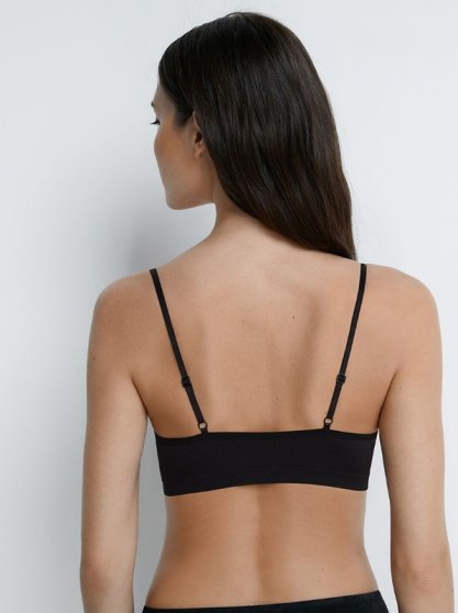 Оптовая продажа. Женский топ-бра на тонких бретелях из мягкой однотонной микрофибры по системе Seamless без боковых швов, идеально повторяя изгибы тела, обеспечивая комфортную поддержку. Материал позволяет коже дышать, хорошо впитывает влагу, сохраняет форму и цвет. Базовая модель на каждый день, для занятий спортом, для активного отдыха, для прогулок, для офиса. Рекомендуется бережная стирка при температуре не выше 30 градусов.
