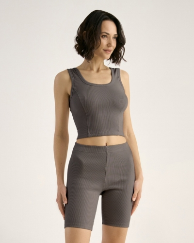 ХЛОПОК 92%; ЭЛАСТАН 8%Майка из кашкорсе/ облегающая с отстроченными рельефами. Горловина и проймы окантованы основной тканью