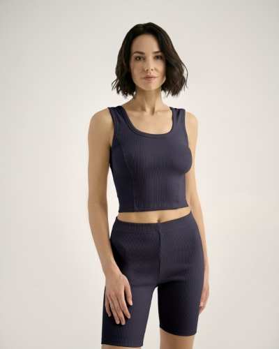 ХЛОПОК 92%; ЭЛАСТАН 8%Майка из кашкорсе/ облегающая с отстроченными рельефами. Горловина и проймы окантованы основной тканью