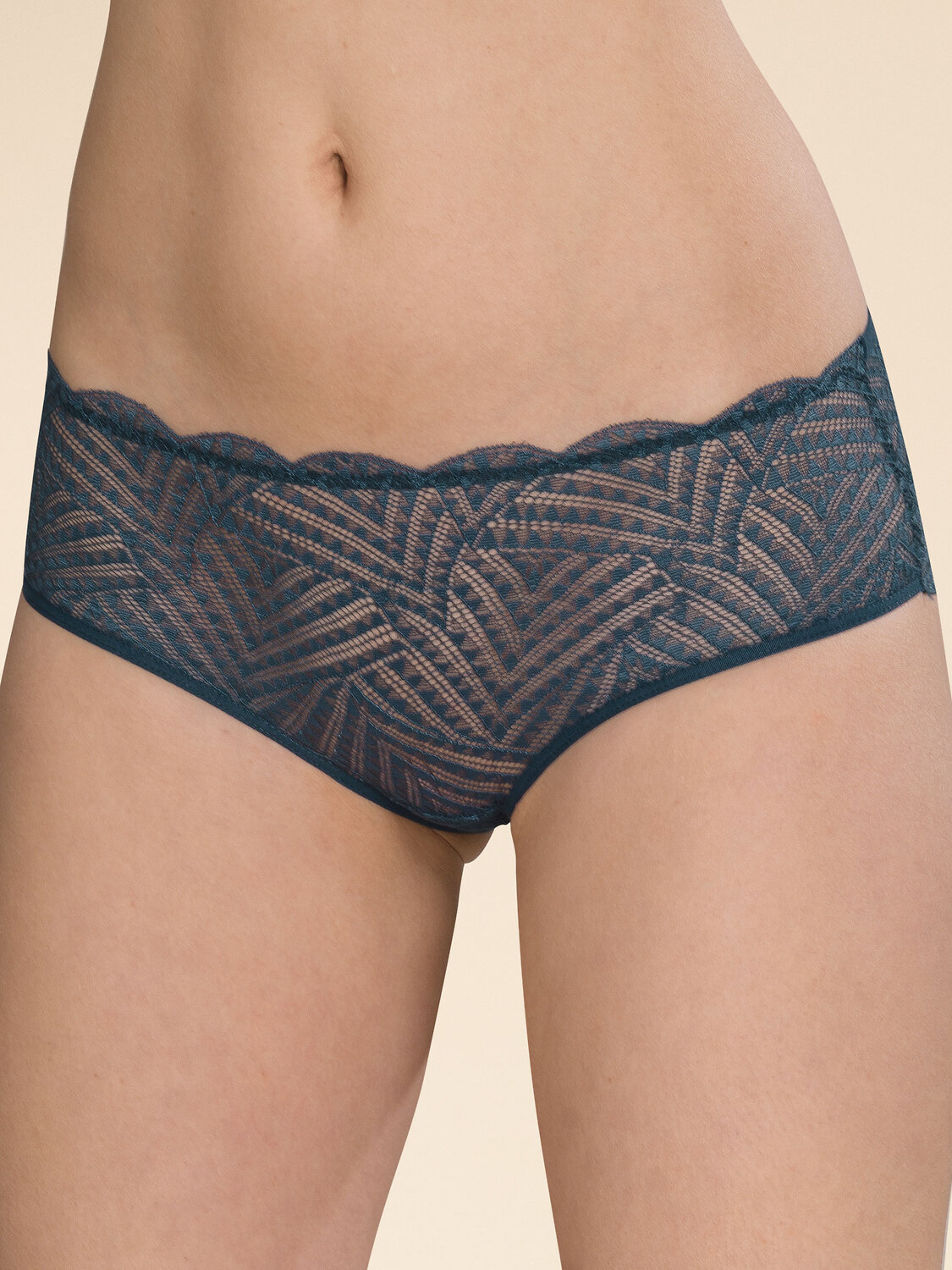 Женские кружевные трусы-шорты со средней посадкой для влюбленных в красивый образ жизни. Эластичная и мягкая ткань позволяет избежать натираний и неудобств, кожа дышит. Кружево с фестонным краем подчеркивает изящные линии тела и придает модели романтичные нотки. Нежный кружевной узор придает женственности и изысканности. Вы можете создавать разные образы по настроению - от повседневных и классических, до соблазнительных.