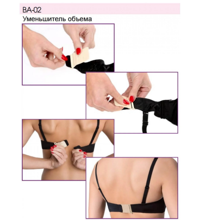 Уменьшает объем бюстгальтера, который стал слишком большим. Идеальный для женщин, которые похудели или объем их бюстгальтера растянулся. Позволяет регулировать объем без стойких изменений.
