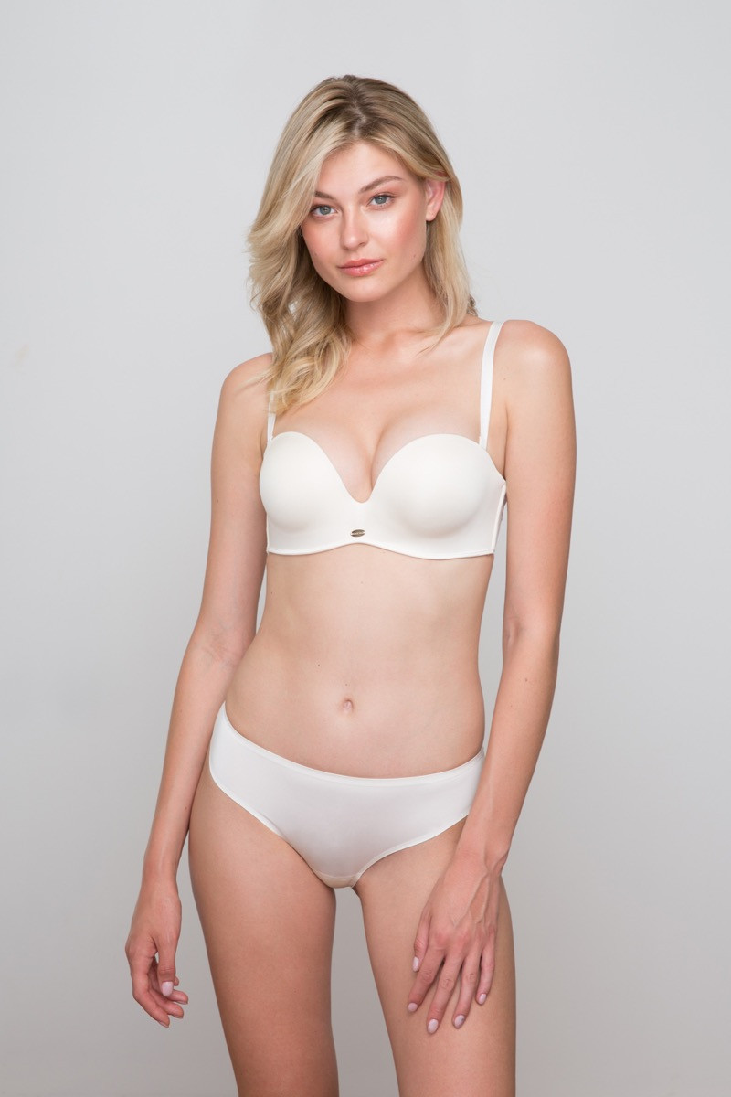 Бесшовные женские трусики бразильяна ROSE&PETAL LINGERIE линии Mercurie сделаны из тонкой микрофибры, позволяющей воздуху свободно циркулировать по коже. В задней части по пройме трусов полностью отсутствуют швы. Отсутствие выпирающих швов, текстуры и украшений делает трусики незаметными под одеждой. Комфортные трусы бразилиана станут отличным выбором для повседневной носки. Они остаются незаметными под платьями, юбками, джинсами. Конструкция трусов бразильяна представляет собой нечто среднее между стрингами и слипами: ягодицы в них открыты на 2/3, но боковины более узкие, а вырезы на бёдрах более глубокие. В отличие от стринг, ластовица в бразильяна широкая. Бразильяна идеально подчеркнут форму ягодиц, и визуально сделают их более округлыми и аппетитными, отлично подчеркивают соблазнительность стройной фигуры. Они могут выступать в роли тонких корректирующих трусов для типа фигуры "перевернутый треугольник" - благодаря удачном крою визуально расширяется нижнюю часть тела.Цветовой ряд модели состоит из чёрных, белых и бежевых трусов бразильяна. Слоновая Кость