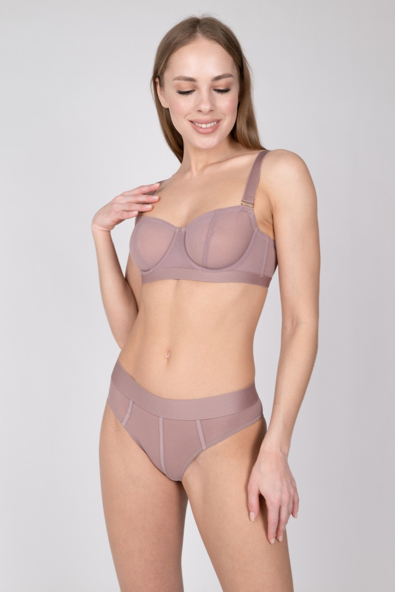 Трусы женские Rose&Petal Lingerie – кружевное белье, которое выглядит весьма соблазнительно. Трусики выполнены в кремово-бежевом цвете и украшены по краям тесьмой, что создает нежный и женственный образ. Удачно дополняет дизайн милый бантик с подвеской. Задняя часть изделия закрывает половину ягодиц, но полупрозрачные кружева не скрывают их красоту. Советуем также приобрести бюстгальтер Rose&Petal Lingerie. Серо-Коричневый
