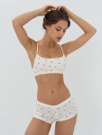 Топ женский бежевый с принтом "вишенки"