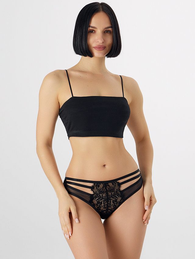 Классический черный цвет и сочетание кружева с сеткой делают эту модель универсальной — она легко сочетается с различными бюстгальтерами и подходит как для повседневной носки, так и для особых случаев.