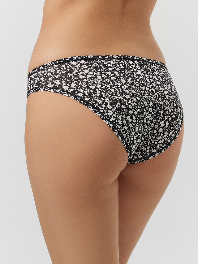 Трусы слипы женские черные с цветочным принтом