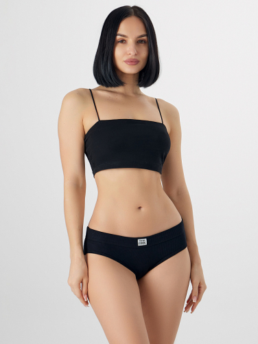 Трусы выполнены из эластичной рибаны, которая обеспечивает мягкость, воздухообмен и идеальную посадку. Все срезы обработаны поперечными бейками из рибаны с внутренней резинкой для деликатной фиксации. Подкладка ластовицы из хлопка гарантирует гигиеничность и дополнительный комфорт.