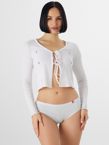 Трусы имеют классический силуэт слипы с удобной средней посадкой. Широкий пояс украшен нежной кружевной отделкой, которая добавляет модели женственности и изящества, не нарушая комфорта. Ластовица выполнена из гладкой хлопковой кулирки, что гарантирует гигиеничность, мягкость и дополнительную нежность. Все края изделия, включая окантовку, аккуратно обработаны, что предотвращает натирание и обеспечивает идеальное прилегание к телу.