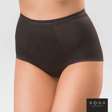 Ретро-трусики с высокой линией талии отлично обтягивают фигуру. Зона промежности уплотнена хлопковой вставкой.
