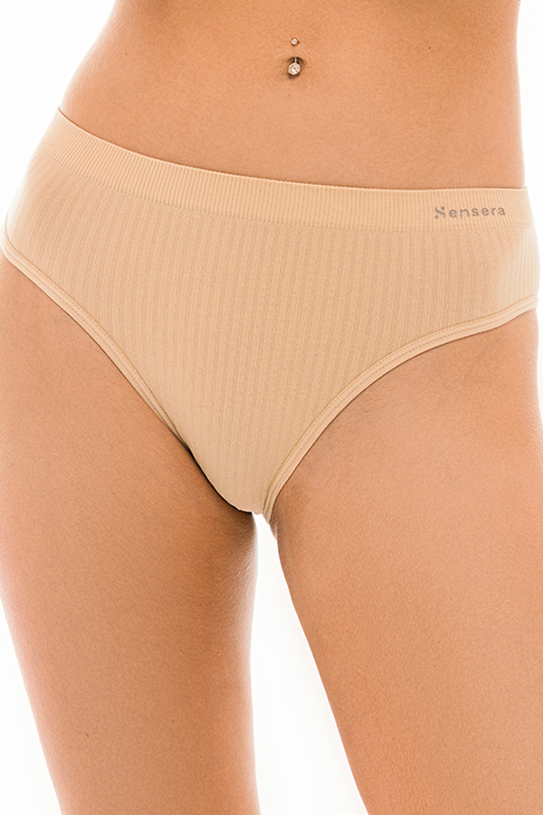 Трусики Brief со средней посадкой из эластичного рибового полотна в широкий вертикальный рубчик. Эластичная окантовка по краю ножек, ластовица из хлопка. Брендированная резинка на талии.