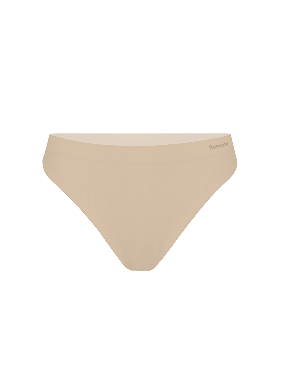 Трусики Tanga со средней посадкой из эластичного рибового полотна в вертикальный рубчик. Эластичная окантовка по краю ножек, ластовица из хлопка. Брендированная резинка по талии.