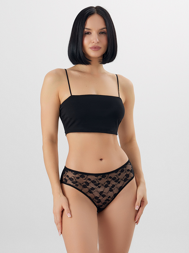 Задняя деталь оформлена кружевной вставкой со средним швом, что обеспечивает аккуратную посадку. Подкладка ластовицы из мягкого трикотажа и эластичная тесьма по верхнему срезу и ножкам гарантируют комфортное прилегание, которое не стесняет движений и сохраняет форму весь день.