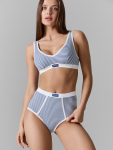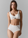 Трусы женские,силуэт-макси. Передняя и задняя центральная деталь выполнена из микрофибры . Боковые части передней и задней детали выполнены из кружева PO304-24(L158-24), 86%полиамид,14%эластан,24см соединены ширителем с деталями микрофибры. Верхний срез трусов обработан эл.тесьмой 12мм (жесткая с/з 12 мм, WTE1-12, Артекс E2317). Подкладка ластовицы выполнена из кулирного полотна, отлетная по переднему срезу. Цвет 1- микрофибра , кулирка,кружево,эл.тесьма