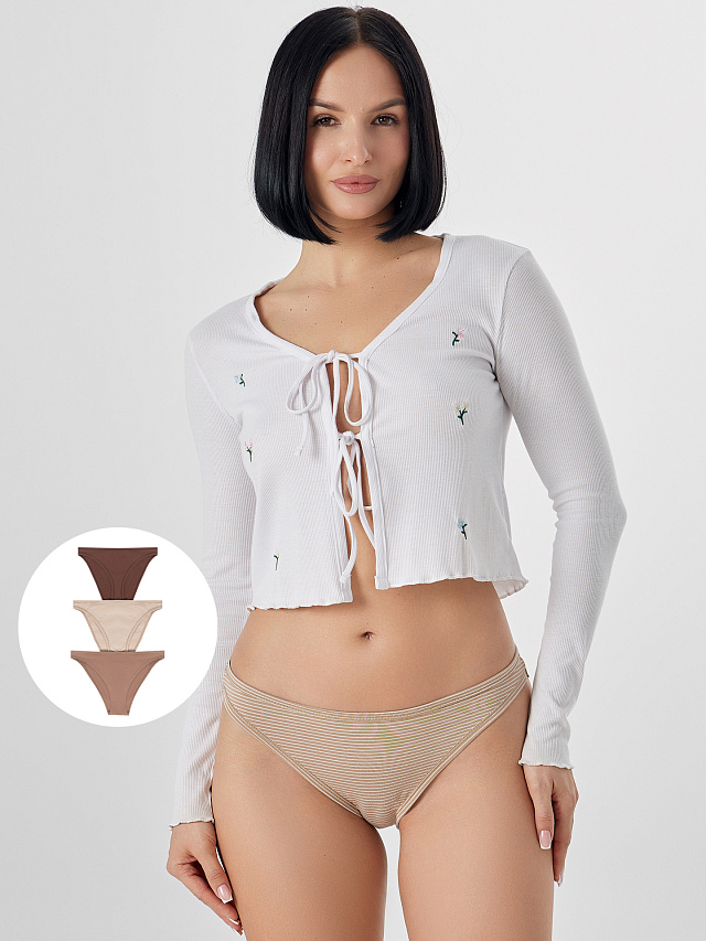 Базовый набор женских трусов силуэта «слипы» — удобное и практичное решение для повседневного комфорта. Модели со средней посадкой мягко прилегают к телу, создавая ощущение легкости и удобства при носке. Верхний и нижние срезы аккуратно окантованы узкой бейкой из основного материала, что придает изделию завершенный и элегантный вид, обеспечивая мягкую фиксацию без излишнего давления. Изготовленные из кулирной глади, трусики отличаются воздухопроницаемостью, мягкостью и приятной текстурой, гарантируя комфорт в течение всего дня. Практичный набор станет идеальным выбором для тех, кто ценит комфорт, качество и минималистичный дизайн в базовом белье!