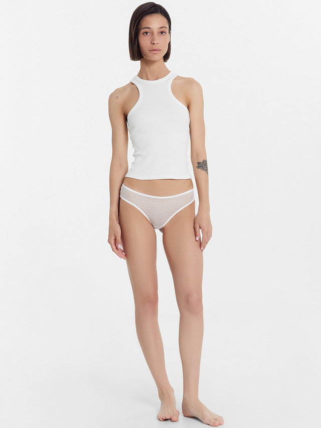 Женские слип-бикини с классической линией талии. Выполнены из невесомой полупрозрачной сетки. По верхнему и нижним срезам – эластичная тесьма. Рекомендуем!