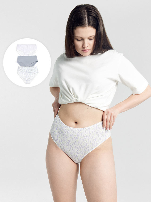 Трусы женские макси мультипак (3 шт.) молочно-бежевые с лавандой