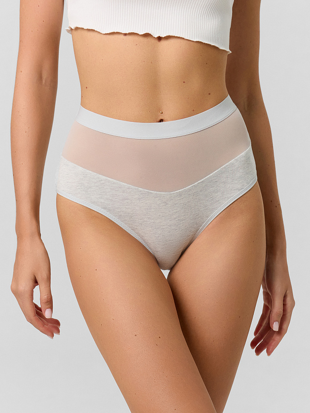 Трусы женские макси с высокой линией талии из трикотажного кулирного полотна с эластичной сеткой.