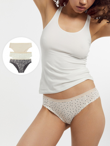 Трусы женские слипы мультипак (3 шт.) молочно-бежевые в горошек