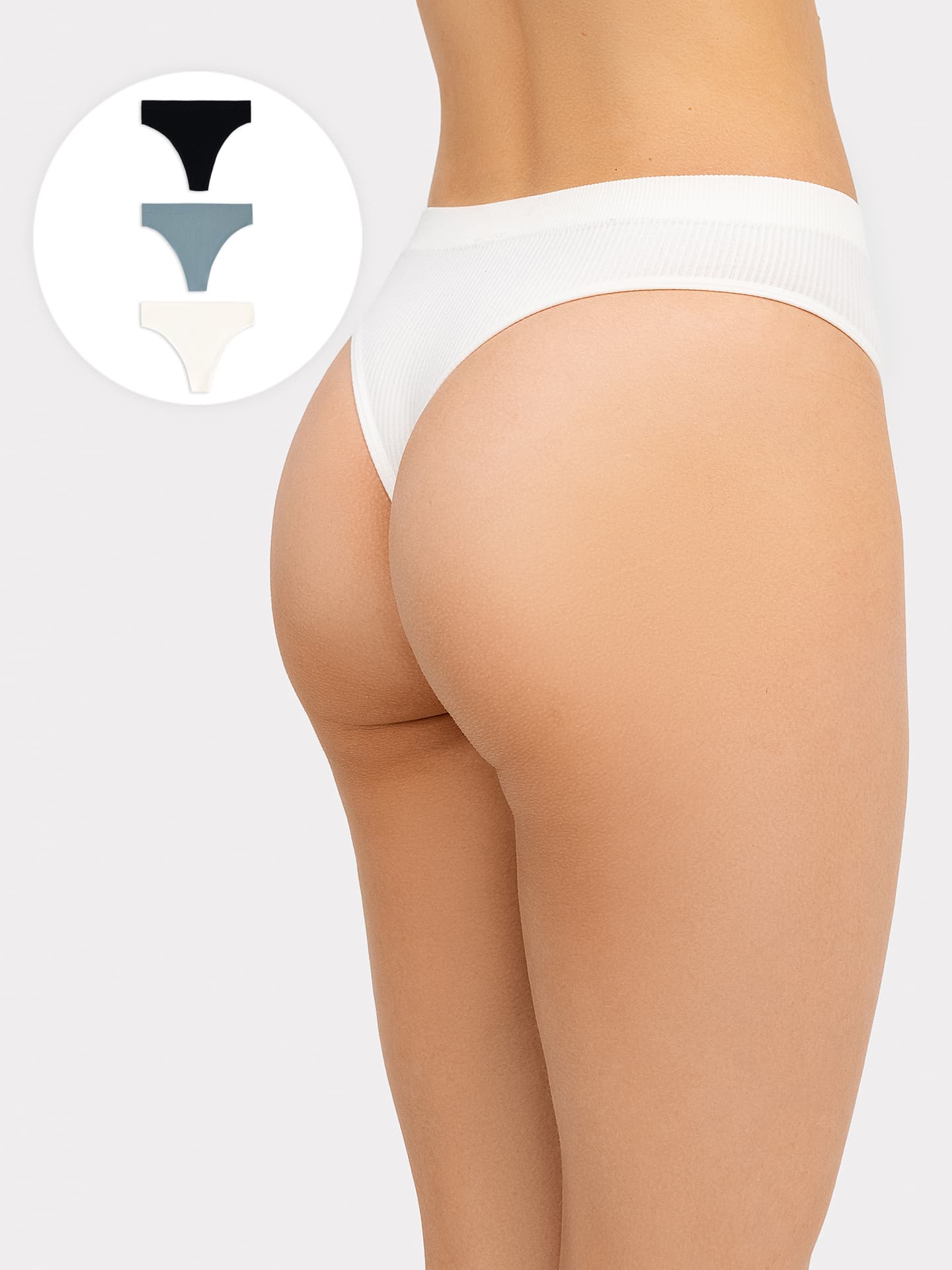 Трусы женские стринги мультипак (3 шт.) в сумрачно-белом цвете