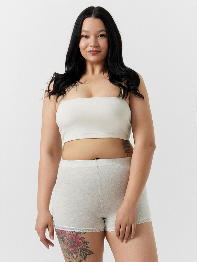 Укороченные женские панталоны из нежного и гипоаллергенного хлопкового полотна. Длина – как у шортиков мини, линия талии высокая. Гарантируют особый комфорт, сглаживают проблемные места, делают силуэт более элегантным. Нижние срезы декорированы ажурным кружевом. Созданы для дам с пышными формами!