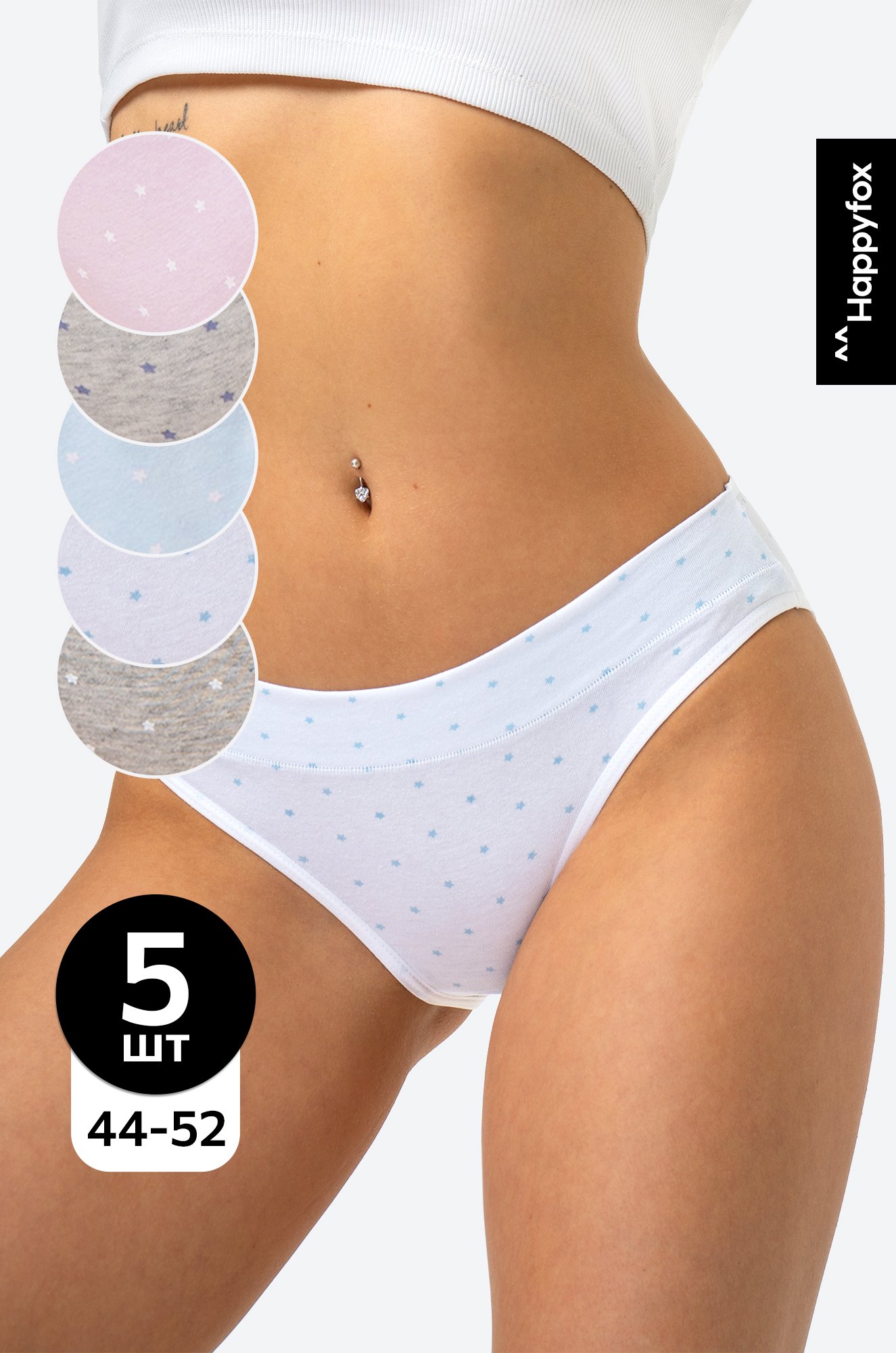 Комплект трусов 5 шт. с рисунком звезды идеален на каждый день. Широкая мягкая резинка нежно прилегает и не сдавливает живот, аккуратные плоские швы не ощущаются в течение дня, а хлопковая ластовица дарит комфорт в деликатной зоне.