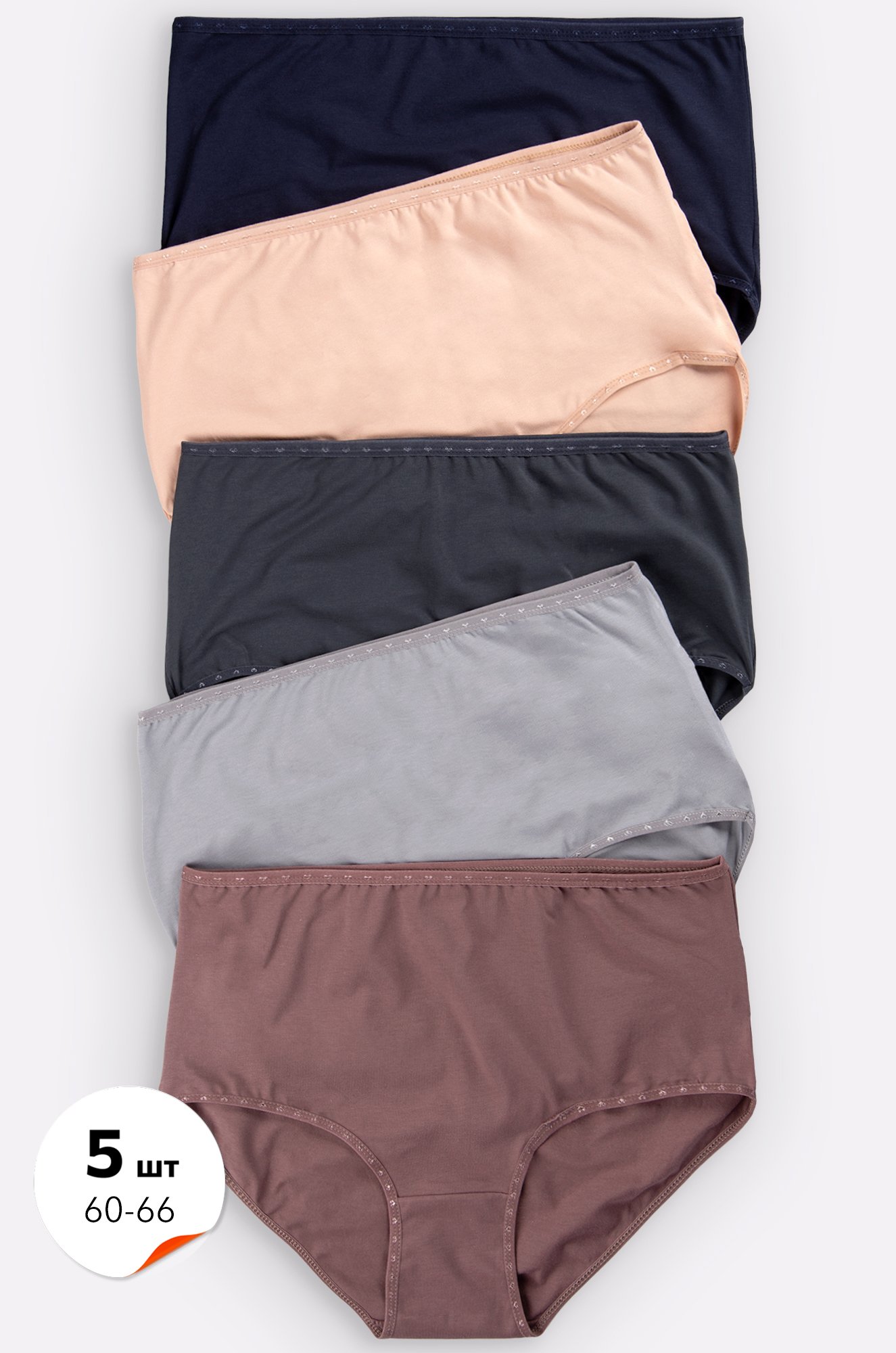 Классический набор женских трусов 5 шт. больших размеров с высокой посадкой выполнен из натурального хлопка с добавлением эластана. Трикотажная ткань приятная к телу, очень мягкая и прочная. Благодаря крою и добавлению эластана трусики слипы плотно прилегают к телу, обладают легким утягивающим эффектом.