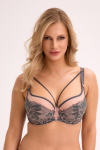 Леопард 70E, 80D Бюстгальтер Aliyah №01 U push-up выполнен на косточках, чашки шитые, нижняя часть чашки из тонкого поролона телесного цвета со съемными пуш-ап вкладышами, внешняя часть чашки из черного трикотажа, продублированного сеткой в тон, трикотажа с хищным принтом и уникального кружева с ресничками , верхняя часть из тонкого прочного тюля, который при наложении на кожу остается практически незаметным. Бретельки не отстёгиваются, регулируются по длине, на спине застёжка - удлинитель на 2 крючка, фурнитура металлическая цвета меди, спинка комбинированная из стабилизирующей сетки. В зоне декольте несъемные тонкие дополнительные бретели с металлическими элементами, регулируются по длине, их можно свободно переставлять, придавая модели асимметричную небрежность. Бюстгальтер идеально комплектуется трусиками Aliyah. Буйство сердца, бьющегося в женской груди, прекрасно укротит экзотическая Aliyah. полиамид 88%, хлопок 8%, эластан 4%