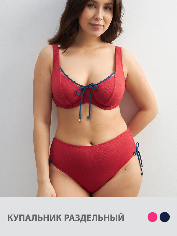 Раздельный купальник из фактурной микрофибры. Материал быстро высыхает, приятно ощущается на теле, устойчив к воздействию хлора и ультрафиолета. Полностью на подкладке, не просвечивает.