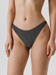 Бесшовные трусы-стринги с люрексом из микрофибры с вафельным плетением, с высокой линией талии. Материал в составе обладает нежной текстурой, приятно ощущается на теле, превосходно пропускает воздух, впитывает влагу, хорошо сохраняет форму и цвет. Отсутствие боковых швов, вывязанная хлопковая ластовица и широкая резинка создают оптимальный комфорт и обеспечивают свободу движений.