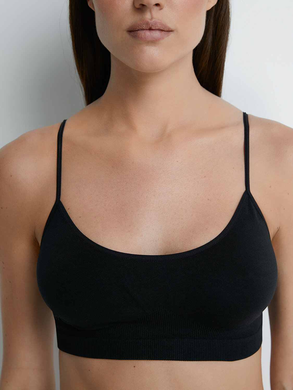 Женский топ из микрофибры на тонких бретелях. Материал в составе обладает приятной текстурой и потрясающе ощущается на коже. Технология Seamless обеспечивает отсутствие боковых швов и превосходное облегание.